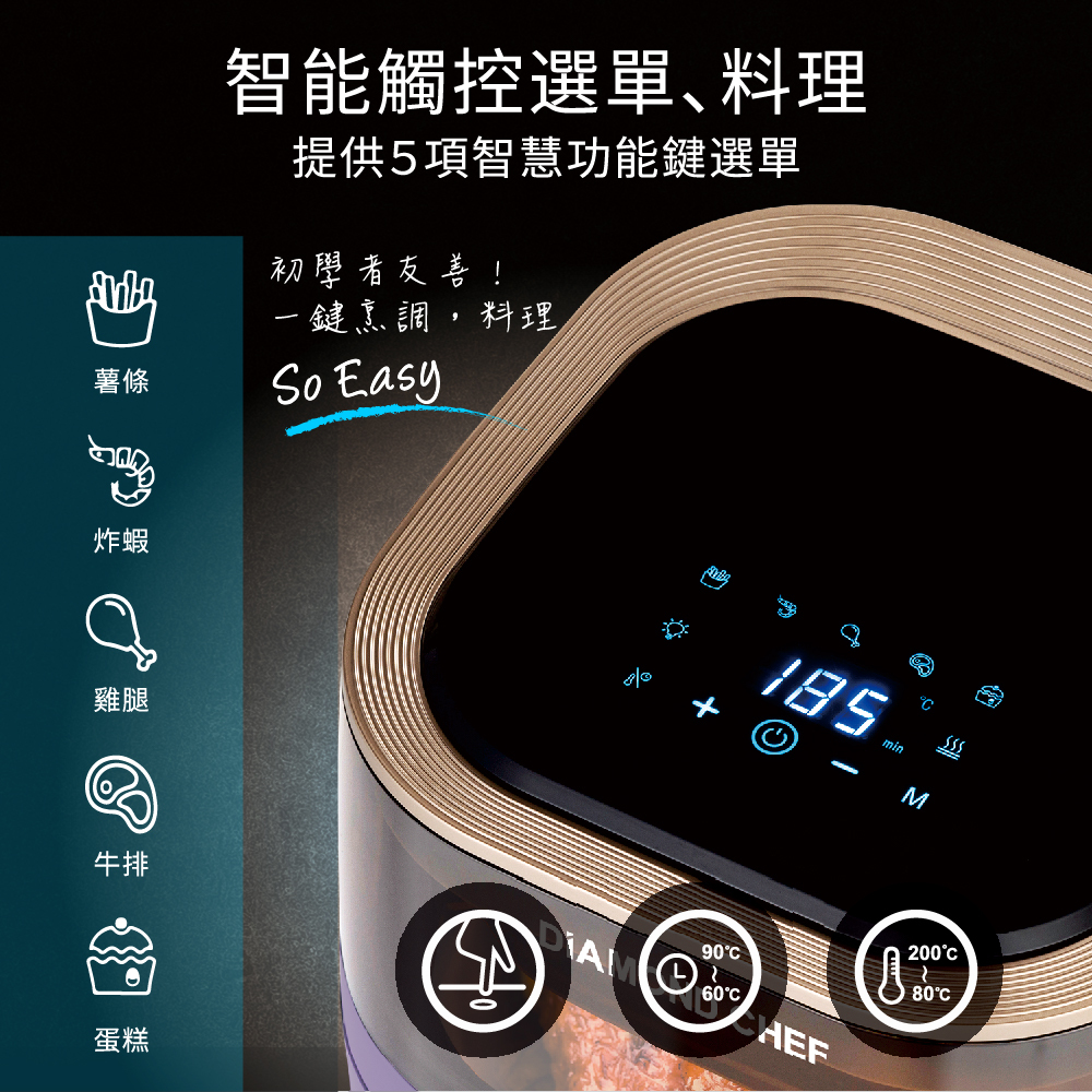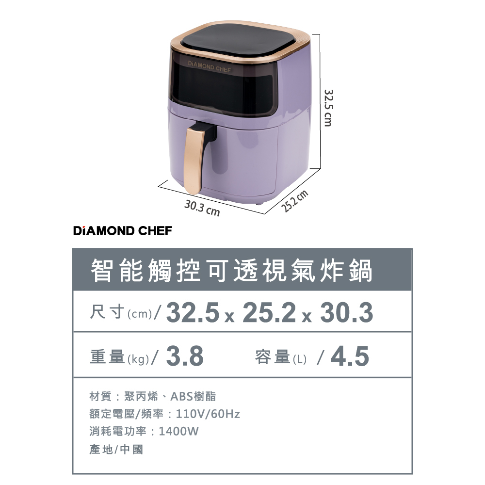 智能觸控可透視氣炸鍋4.5L(香芋紫)