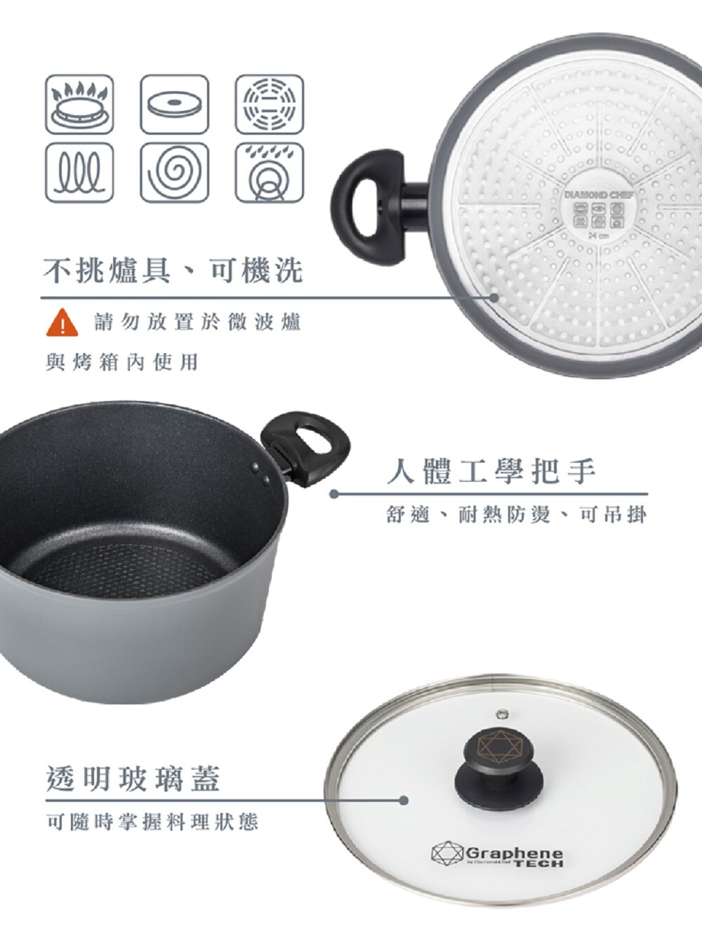 ● 石墨烯不沾塗層,堅固耐刮磨
