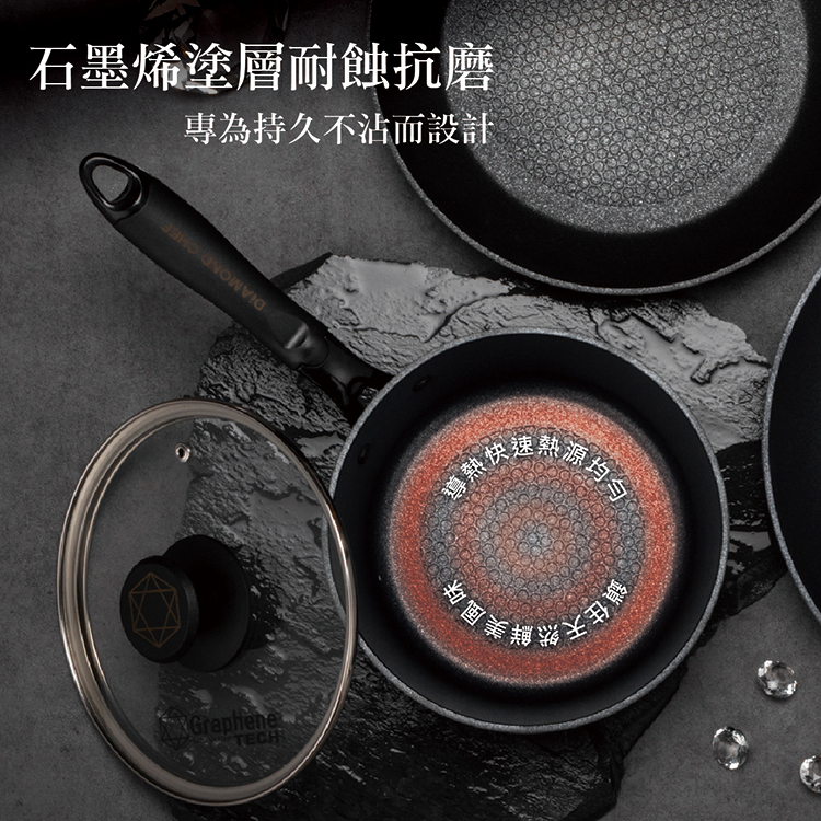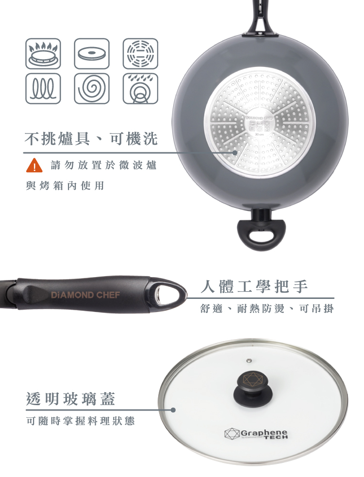 品名:DIAMOND CHEF 黑金石墨烯不沾單柄深炒鍋-30CM(含蓋)