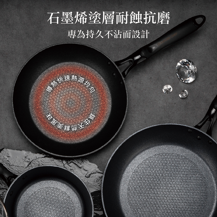 ● 石墨烯不沾塗層,堅固耐刮磨