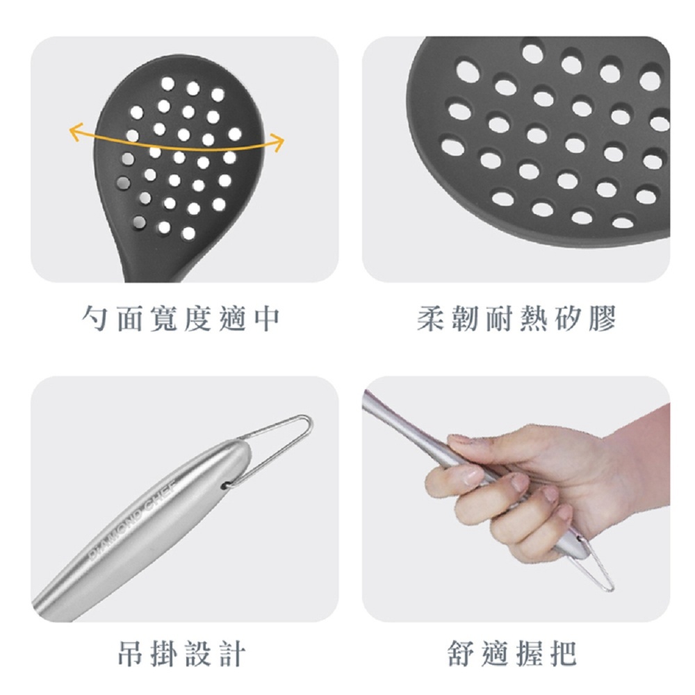 ● 烹煮必備,柔韌矽膠不傷鍋